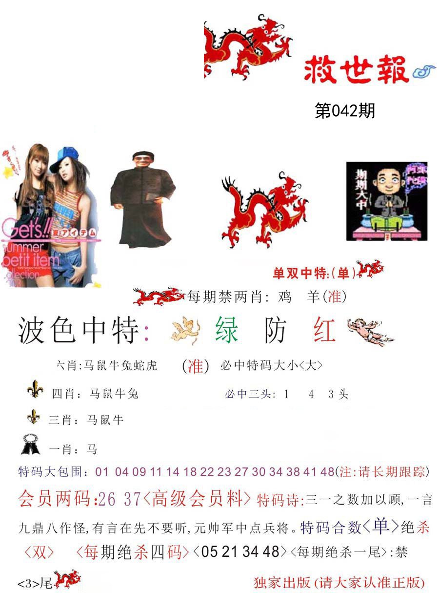 028期绝杀中特【狗肖-4头-4尾-单数】开鼠42 |
