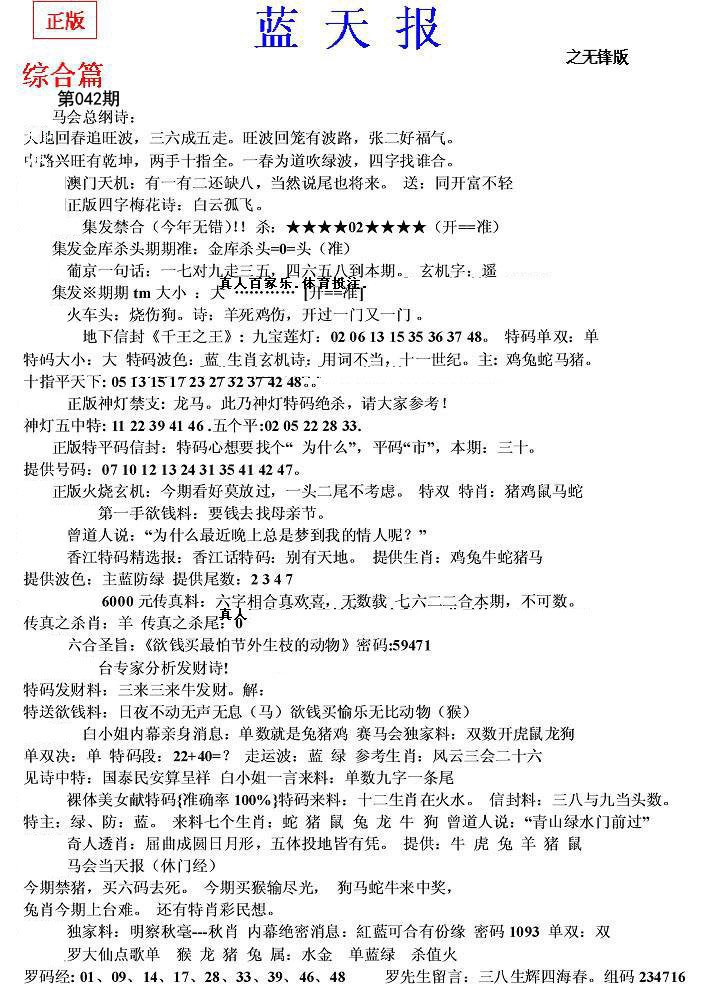 028期成语爆平特【清天有幸薄云天】开鼠42准 |